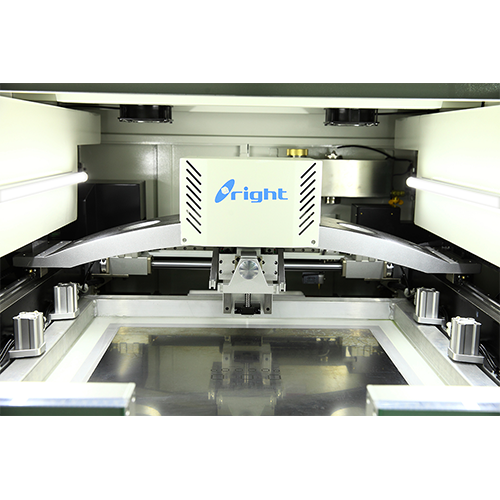 自動調(diào)節(jié)步進馬達驅(qū)動的印刷頭。雙邊雙滑 系統(tǒng)。可調(diào)節(jié)亮度功能,可識別各類型的Mark點,焊點、