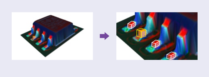 ● 3D技術與顏色特征算法的完美結合,高效檢測元件及焊點的不良